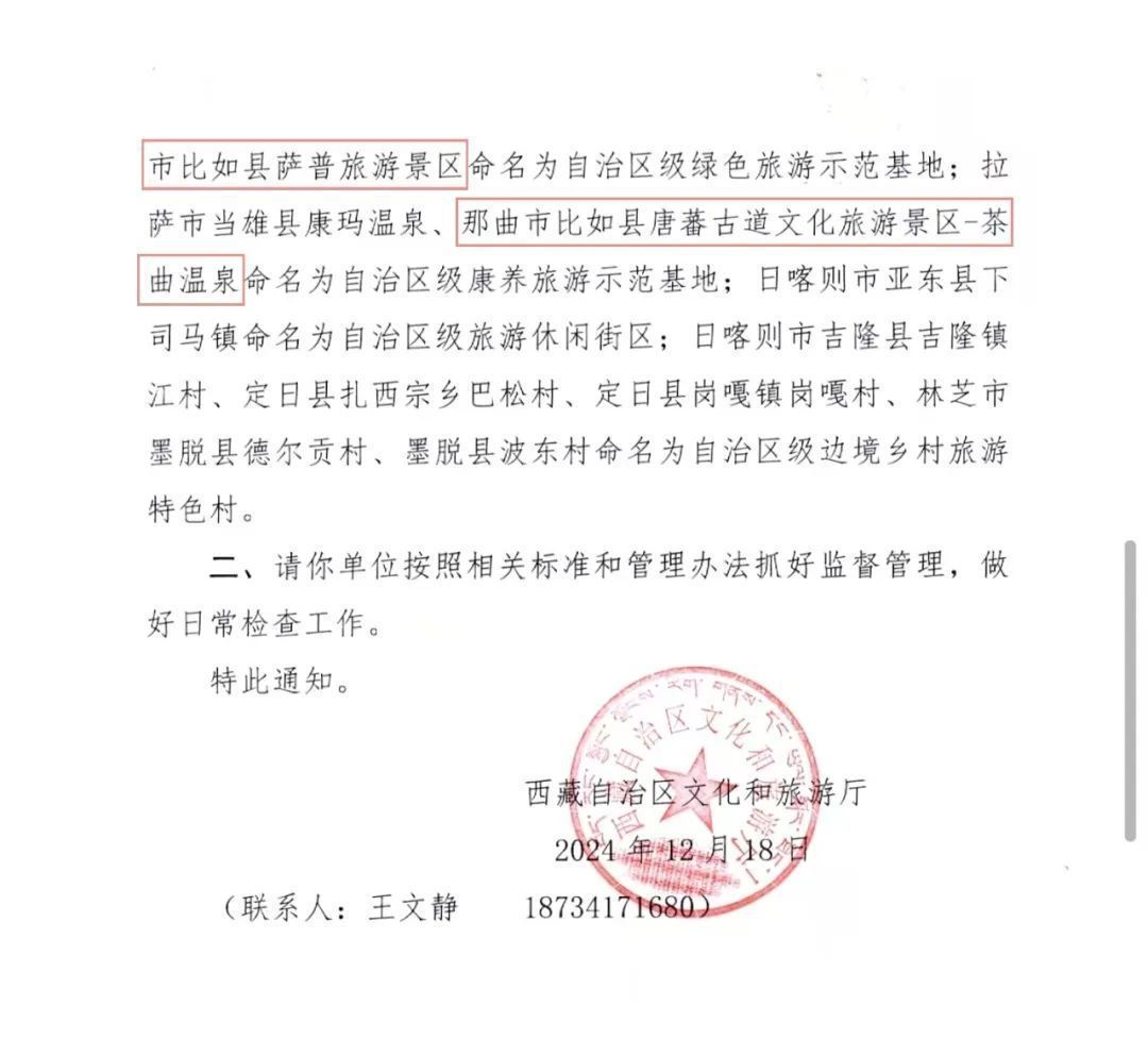 喜報!那曲比如縣兩處景區(qū)被評為示范基地