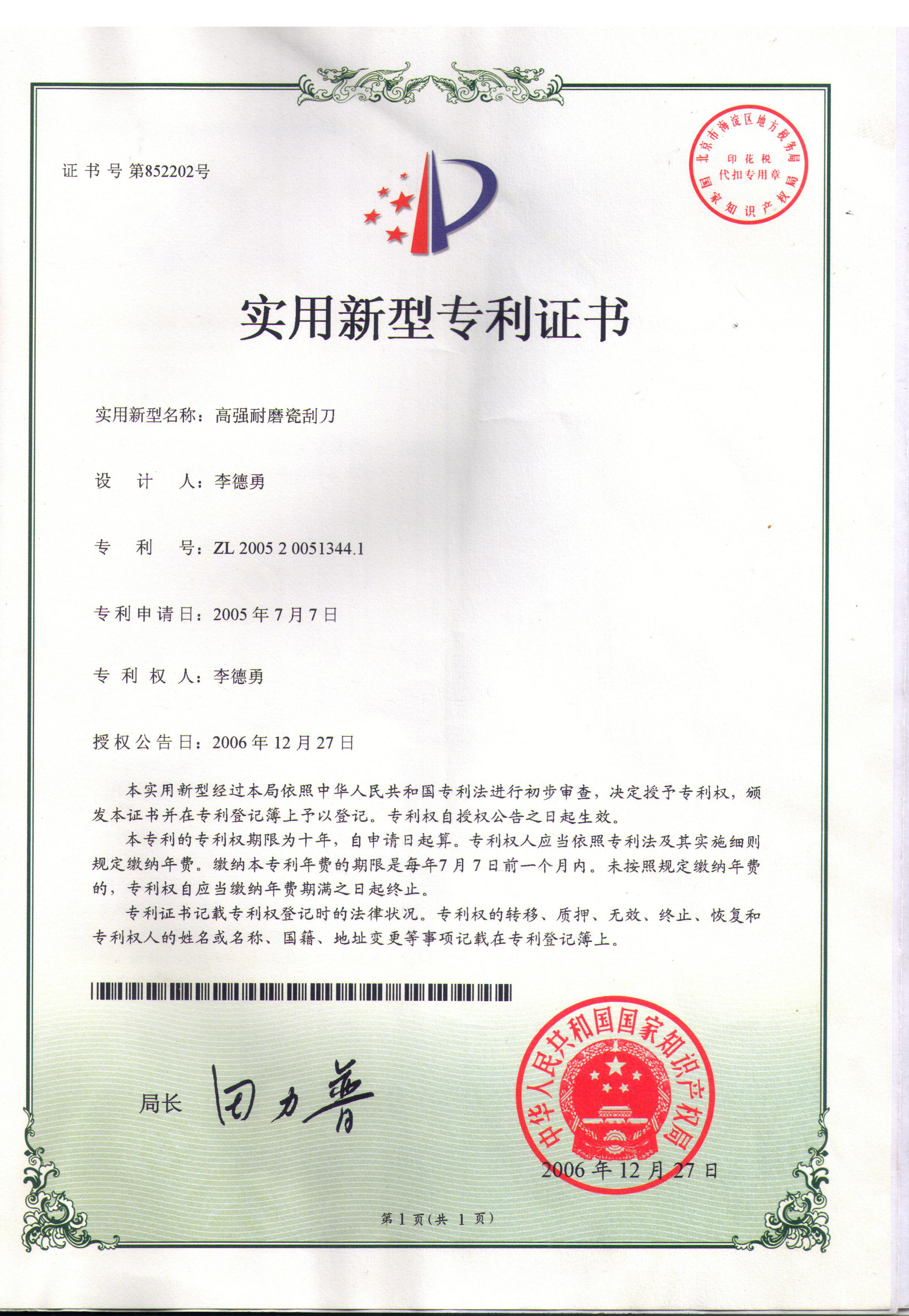 高強耐磨瓷刮刀