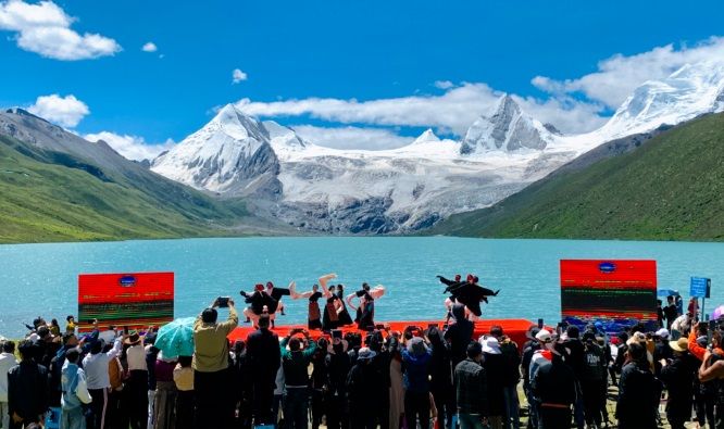 天高地闊,白云祥和,雪山巍然;清風(fēng)徐徐,青草依依,湖水湛藍(lán)。薩普雪山融水匯聚成一條清澈的河,從眼前激流直下。7月15日上午,一場(chǎng)別具特色的文化旅游賽事活動(dòng)在這里拉開(kāi)序幕。一場(chǎng)慷慨激昂、內(nèi)容豐富的主題推介演講,一首首悠揚(yáng)高亢、直擊心靈的民族歌曲,一幕幕輕盈靈動(dòng)、鏗鏘有力的特色舞姿,引得現(xiàn)場(chǎng)數(shù)百名觀眾一陣陣掌聲雷動(dòng)和直播間數(shù)十萬(wàn)用戶(hù)點(diǎn)贊、好評(píng)不斷,成功向區(qū)內(nèi)外推介了比如縣得天獨(dú)厚的旅游資源和特產(chǎn)資源,為旅游事業(yè)和經(jīng)濟(jì)社會(huì)高質(zhì)量夯實(shí)了宣傳工作基礎(chǔ)。