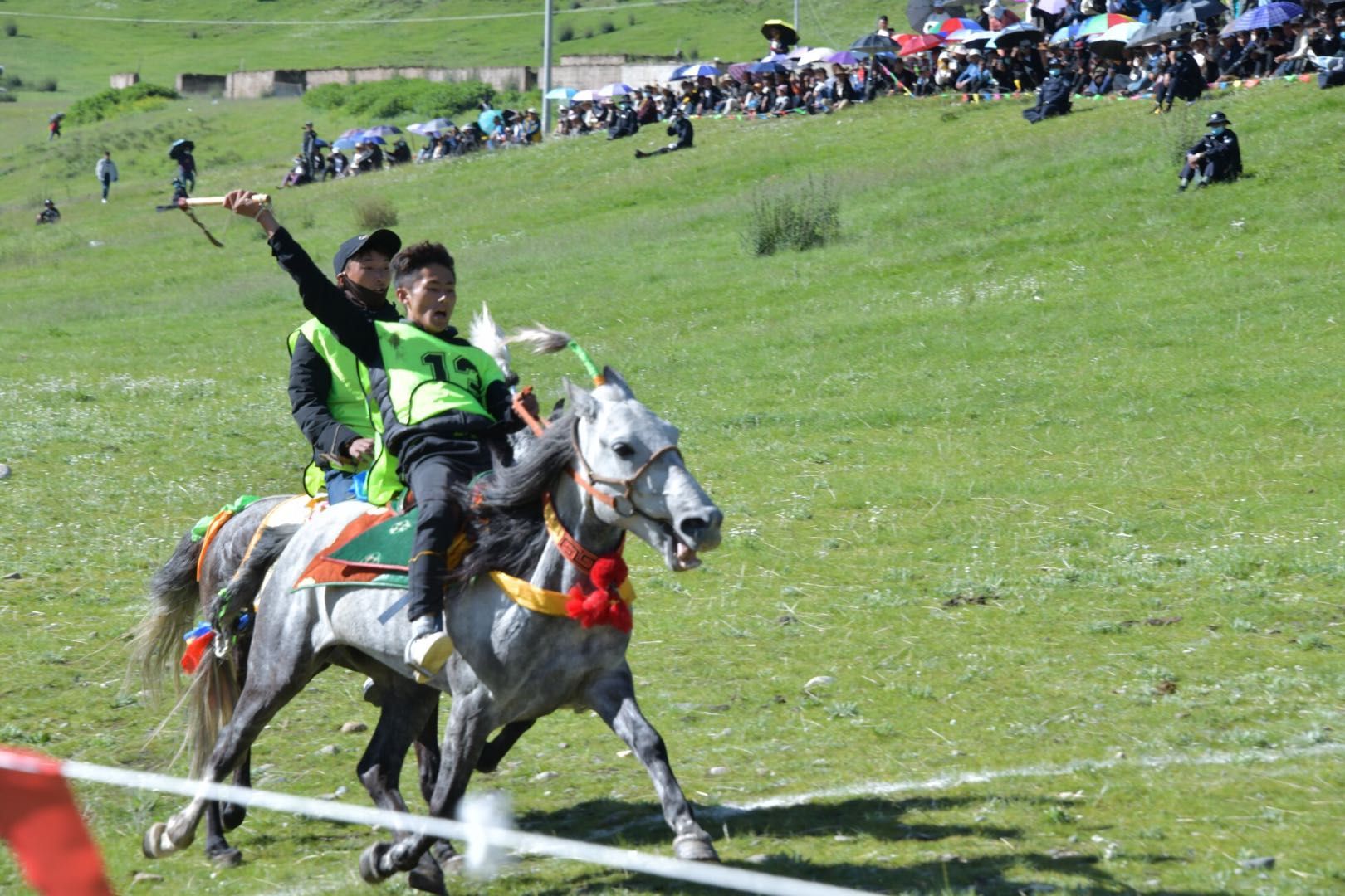 27日上午,在比如縣茶曲鄉(xiāng)措姆頂舉行場面熱烈、令人激情振奮的“走馬預(yù)賽”活動,只見賽馬場上,娜秀男兒身著節(jié)日盛裝,腳跨高大駿馬,在草原上奔馳。經(jīng)過激烈的角逐,共有24名騎手進入7月30日的走馬決賽。