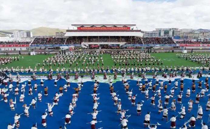 60年來(lái),在黨中央親切關(guān)懷、西藏自治區(qū)黨委堅(jiān)強(qiáng)領(lǐng)導(dǎo)及對(duì)口支援省市和企業(yè)無(wú)私援助下,那曲各項(xiàng)事業(yè)取得全方位進(jìn)步與歷史性成就。開幕式文藝演出以“馬”文化為核心,分三大篇章展開,四川、青海等地馬術(shù)表演隊(duì)與本地隊(duì)伍共展精湛技藝;千人共舞《禮贊甲子》、器樂合奏《風(fēng)從浙江來(lái)·樂在那曲揚(yáng)》等節(jié)目,生動(dòng)呈現(xiàn)西藏自治區(qū)成立60年輝煌成就與對(duì)口支援成果。